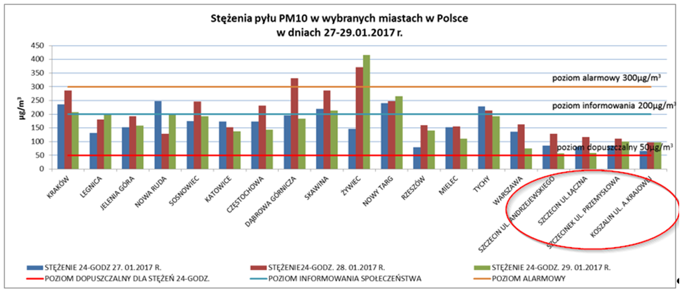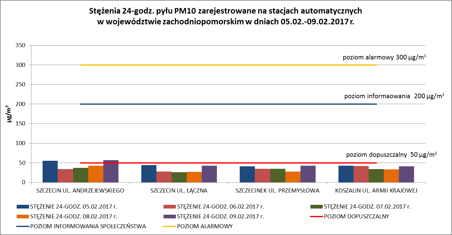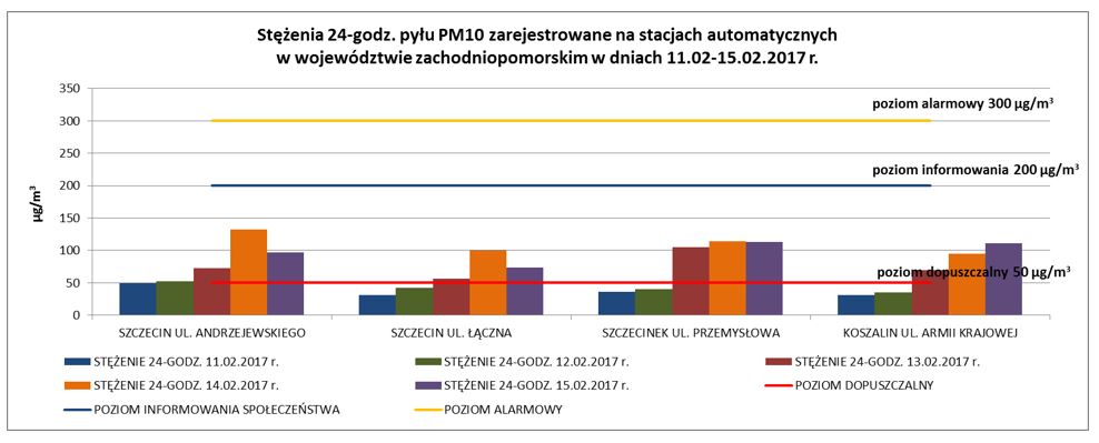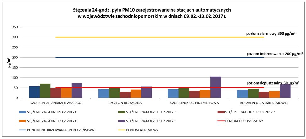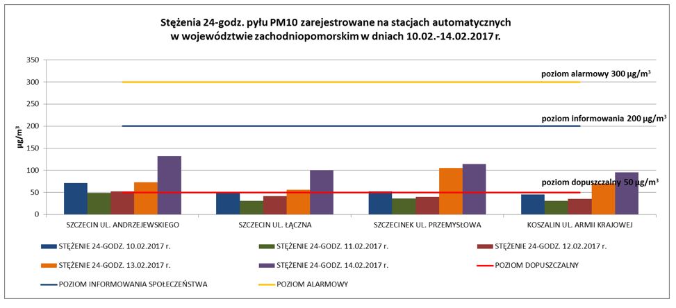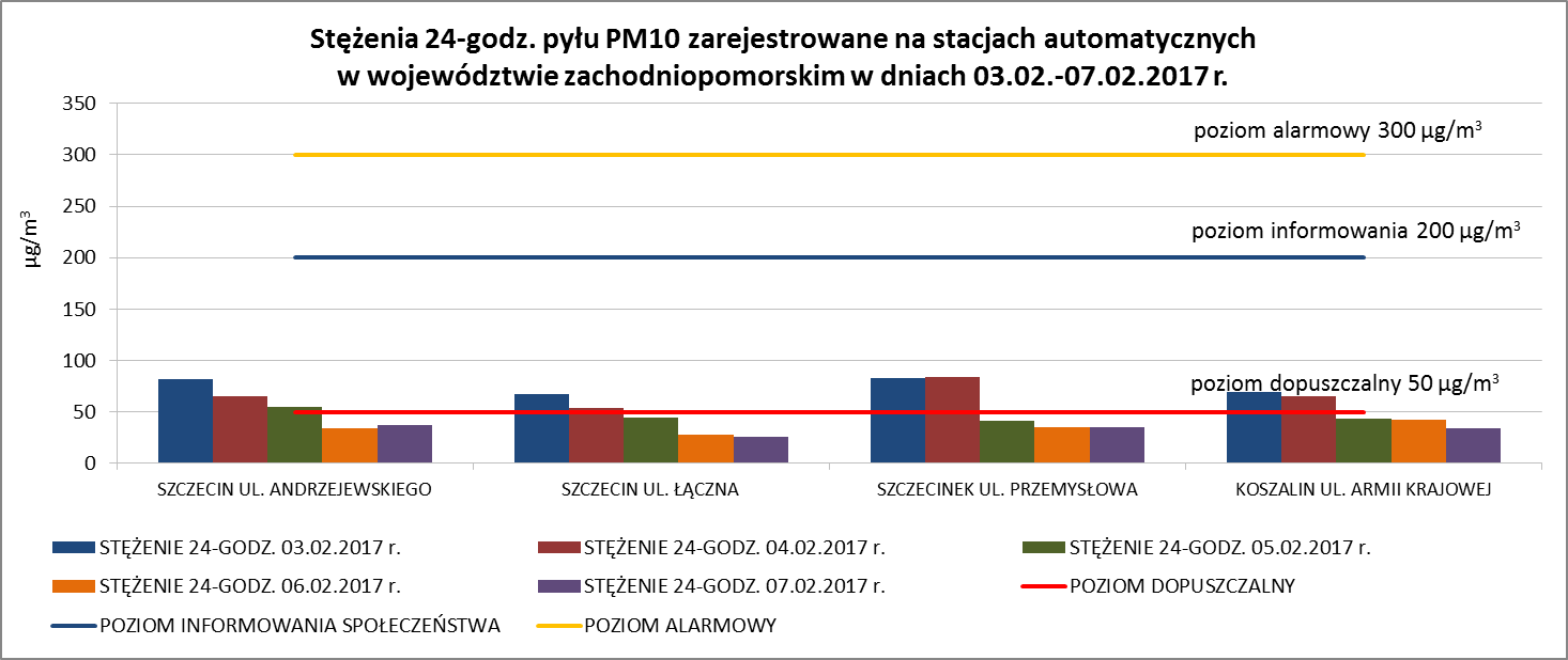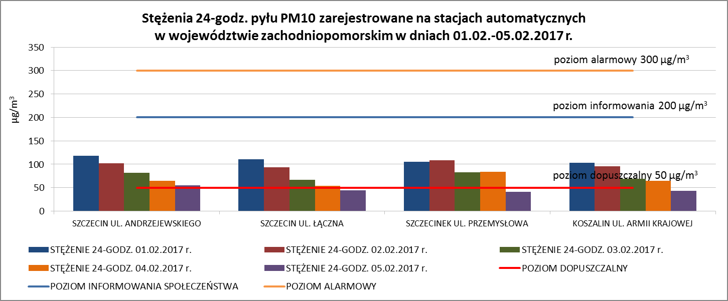 Wojewódzki Inspektorat Ochrony Środowiska w Szczecinie informuje o wynikach pomiarów 24-godzinych stężeń pyłu zawieszonego PM10, wykonanych w miesiącu styczniu 2010 r. na ośmiu stanowiskach pomiarowych zlokalizowanych w czterech strefach województwa zachodniopomorskiego (Aglomeracja Szczecińska, miasto Koszalin, powiat gryfiński oraz powiat szczecinecki).