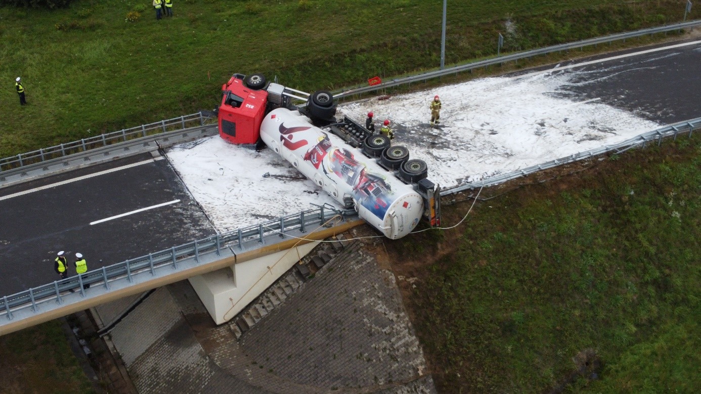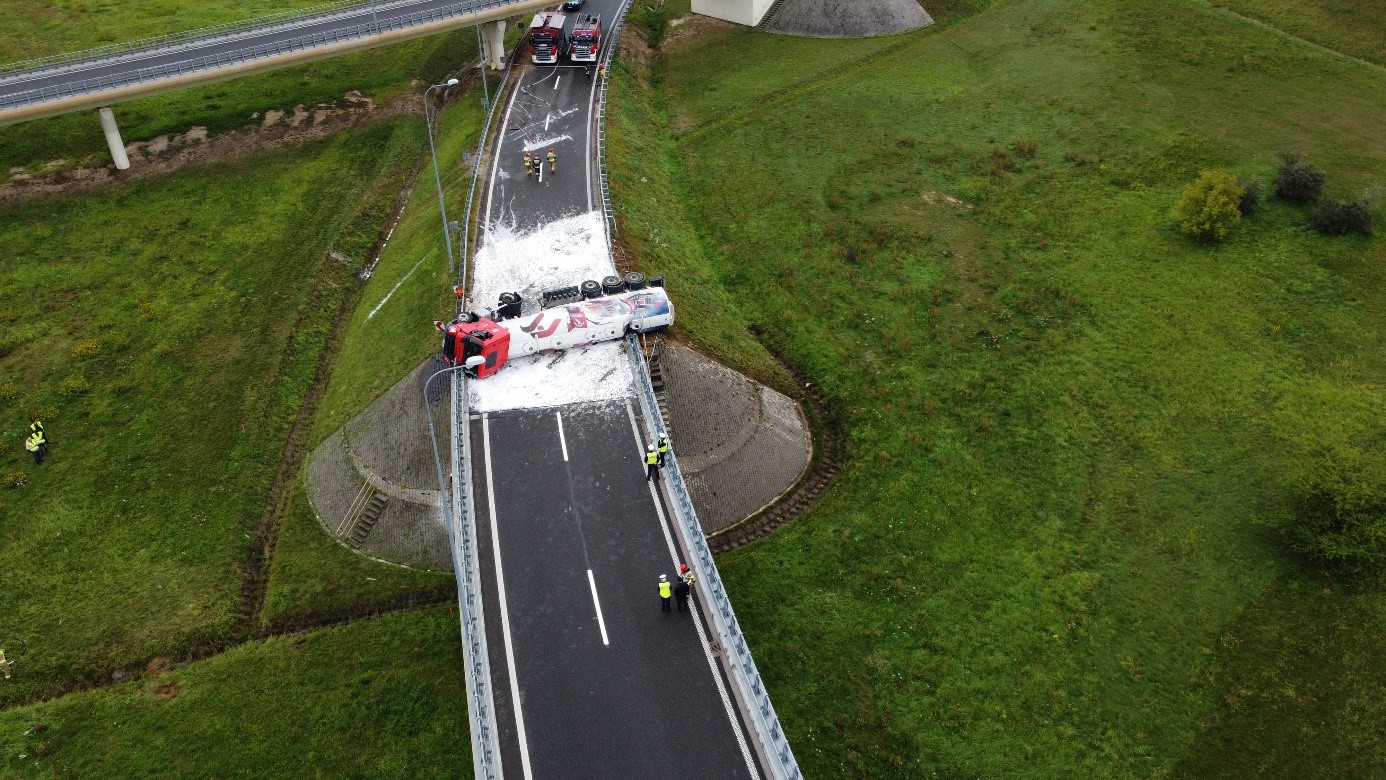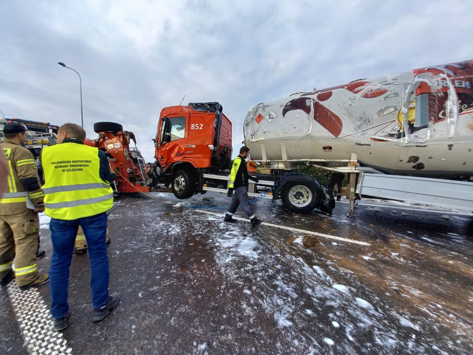 O godz. 9:19 WCZK skorygowało poprzednią informację, że miejscem wypadku jest droga S3 w kierunku Świnoujścia, przy węźle Klucz. Cysterna przewoziła olej napędowy, nie ma osób poszkodowanych. Zablokowany jest pas drogowy.