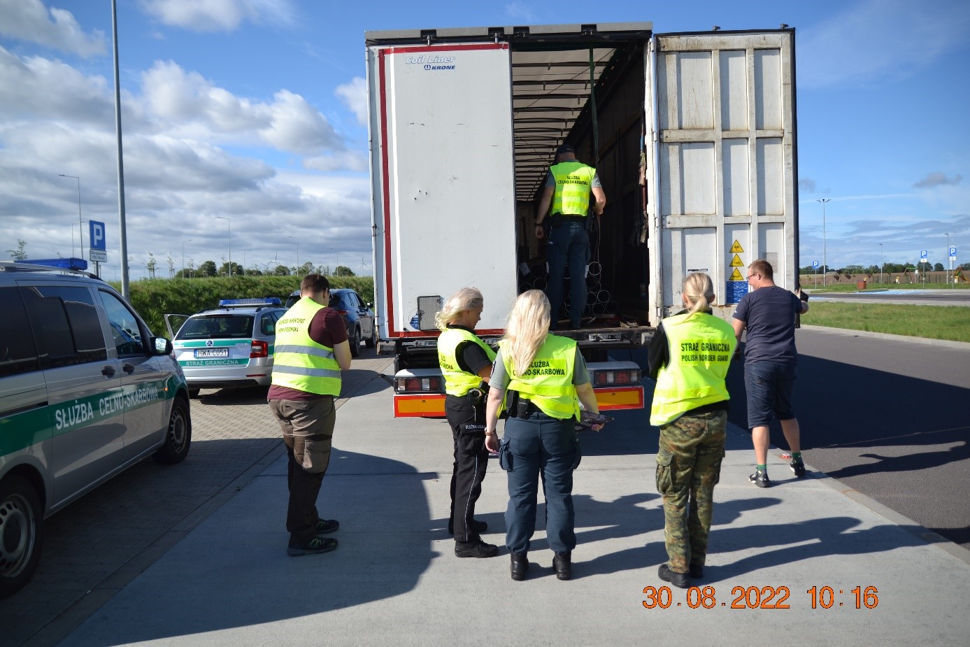 W akcji kontrolnej brali udział przedstawiciele Morskiego Oddziału Straży Granicznej Placówki w Kołobrzegu oraz Zachodniopomorskiego Urzędu Celno-Skarbowego w Szczecinie Oddział Celny w Kołobrzegu Czwarty Referat Kontroli Mobilnej. Podczas kontroli sprawdzano zgodność transportu ze szczegółowymi przepisami prawa. W trakcie akcji skontrolowano 11 pojazdów.