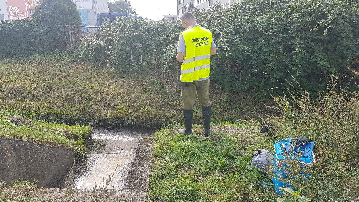 Woda miała kolor jasno brązowy, była mętna i znajdowała się na niej piana koloru szarego. Próbobiorca Centralnego Laboratorium Badawczego Głównego Inspektoratu Ochrony Środowiska Oddział w Szczecinie pobrał próbę jednorazową wody powierzchniowej celem jej zbadania na zawartość: ChZT, zawiesina ogólna, fosfor ogólny, azot ogólny.